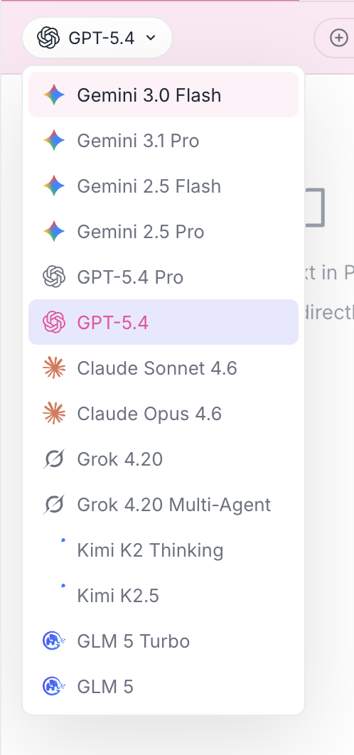 Switch between Gemini, GPT, Claude, Grok, Kimi, and GLM with one click. Enable Thinking Mode to surface the model's chain-of-thought reasoning, and pick the right engine for every task — from fast summarisation to deep multi-step analysis.